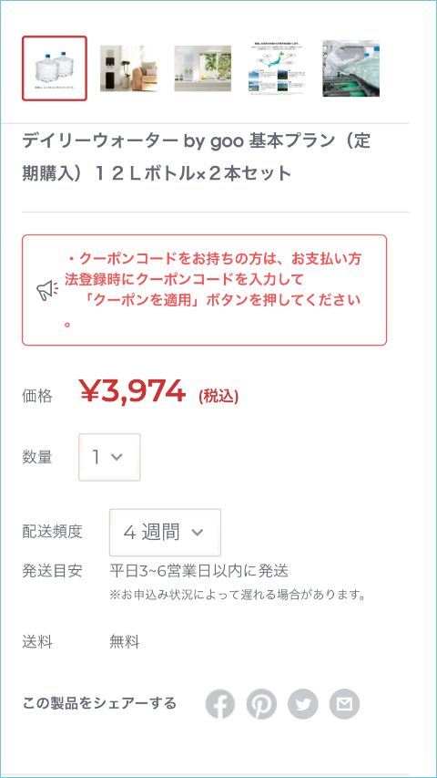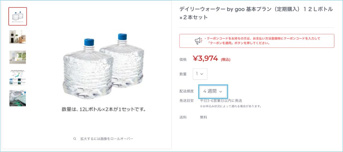 - 天然水の宅配サービスは定期購入が基本となります。