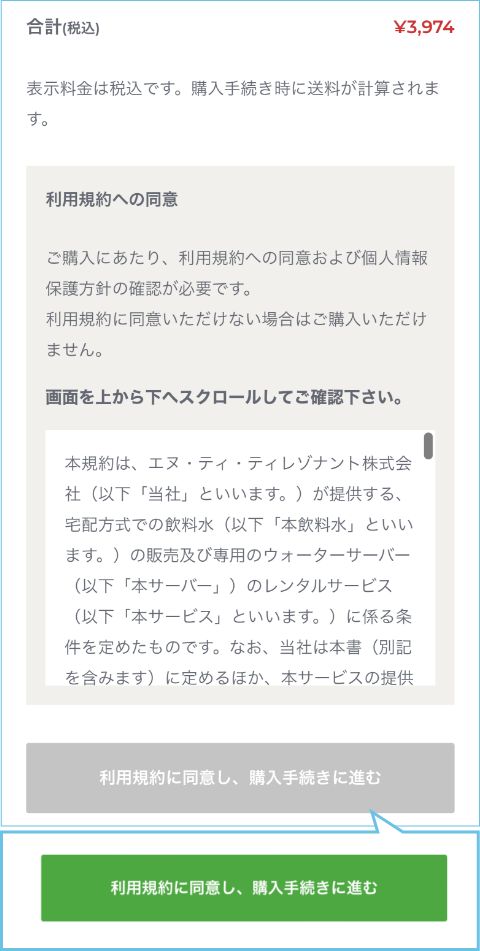 規約のご確認が完了すると購入手続きボタンが緑に変わります。